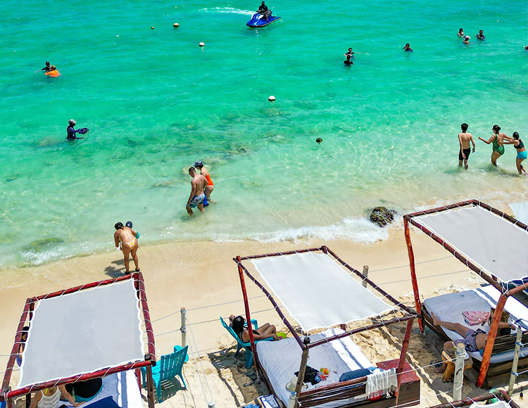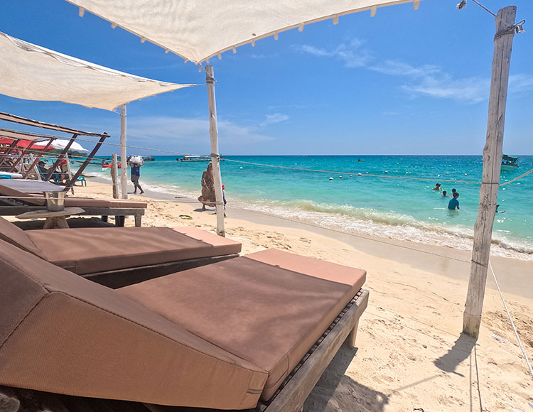 Finalmente, llegaremos a nuestro destino «Playa Tranquila» LA MEJOR ZONA DE BARU, Al llegar serán recibidos por nuestro staff en la playa, se les asignara un lugar en la playa ( cubículos con cama playera y sombra ), tendrán acceso al club donde podran hacer uso de la piscina, asoladoras, baños y duchas, el almuerzo también está incluido en el plan, puede elegir pescado, pollo o vegetariano, acompañado de arroz con coco, patacones, ensalada y bebida. Playa Tranquila es perfecta para bañarte en sus aguas cristalinas y a su ves disfrutar de un paraíso del caribe junto a tu familia o amigos.