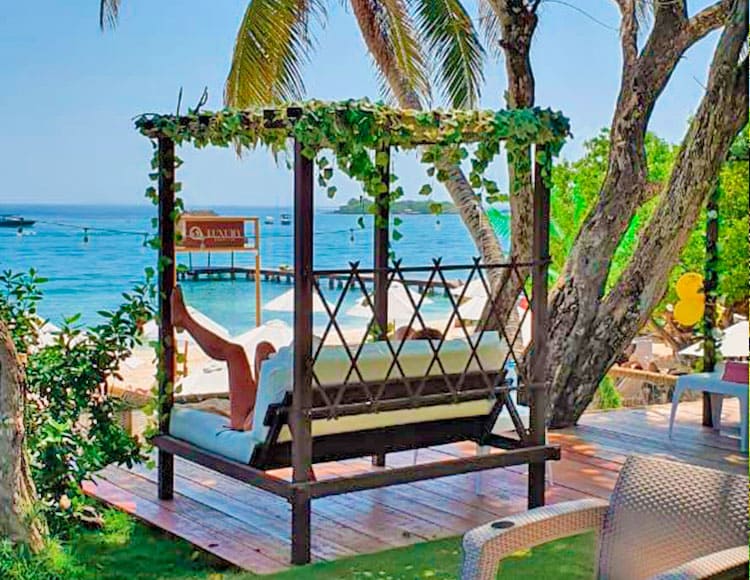 Isla Luxury es un paraíso en pleno corazón de las Islas del Rosario, donde nuestro nombre hace honor al LUJO DE DISFRUTAR DE LA NATURALEZA. Ofrecemos un grandioso Club de Playa para relajarse y contemplar las maravillas de nuestro paisaje con un fresco mobiliario con diseño ecológico – sostenible, ideal para asolearse, leer, hacer deporte, disfrutar deliciosos platos de comida de mar típicos del territorio o deleitarse con refrescantes bebidas de nuestro bar, ÚNICA ISLA CON BARRA LIBRE : Cerveza del día, Cocteles Clásicos ( Piña Colada, Coco Loco, Gin Tonic, Daiquirí, Tequila Sunrise, Caipiriña, Caipiroska, Mojito, Cuba libre ), agua y gaseosa embotellada, dispensador de jugo de naranja y limonada