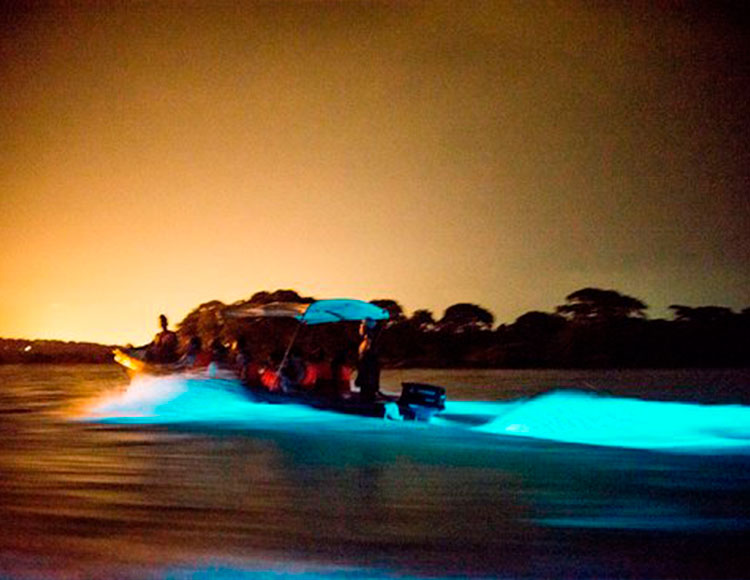 Disfrutar del mejor atardecer que podrás ver. y él “Plancton Luminoso”, es la última actividad incluida en nuestro tour. El guía dará una charla e información acerca de este fenómeno natural y un refrigerio antes de salir hacia la zona de avistamiento del “plancton”. Una lancha los llevara por la orilla de la playa hasta este lugar increíble, donde la naturaleza del plancton brilla en la oscuridad. Este fascinante fenómeno les permite a los visitantes zambullirse en un mar que parece estar lleno de diminutas estrellas y disfrutar un espectáculo mágico. Estaremos haciendo esta actividad durante 20 minutos aproximadamente.