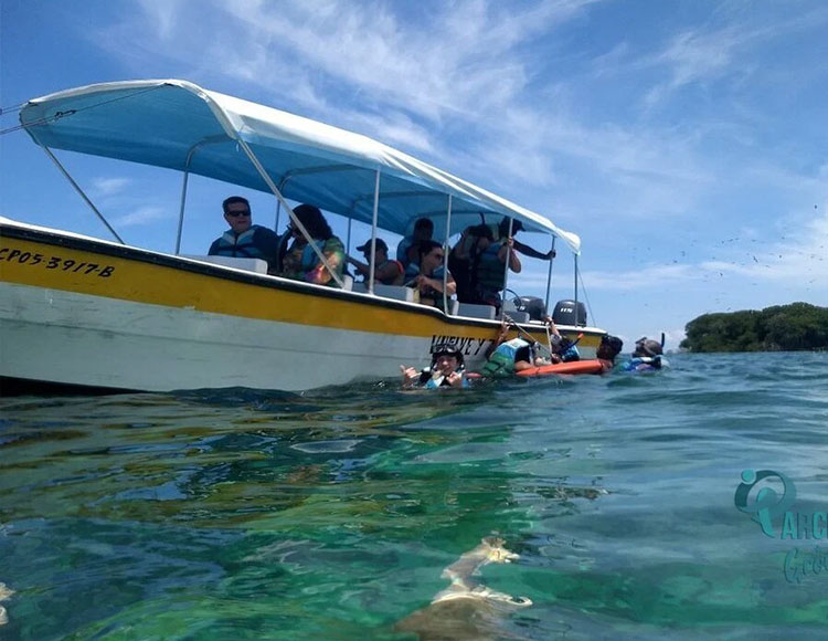 La Isla cuenta con un parqueadero para buses, motos y automóviles, en este lugar descenderemos del bus para dirigirnos hasta la playa, donde los estará esperando una lancha para llevarlos hasta la zona de «Playa Tranquila», el recorrido en lancha es de 4 minutos aproximadamente hasta la zona donde pasaremos el día.